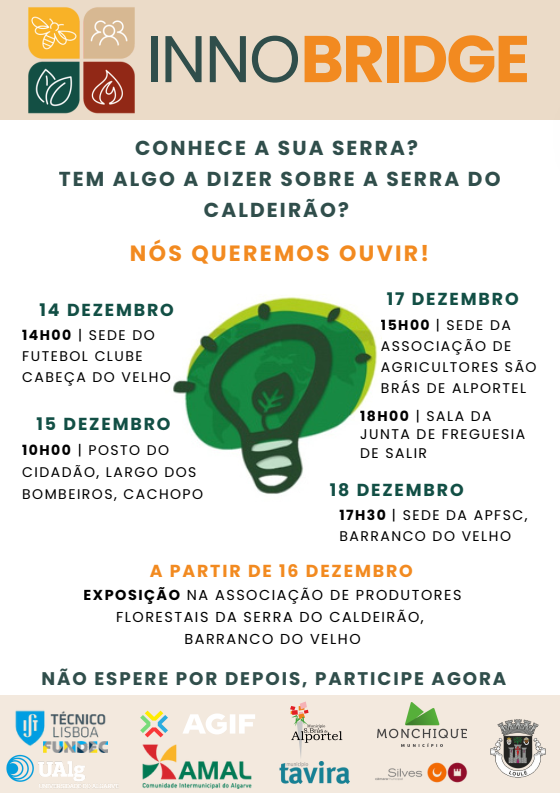 A APFSC tem o prazer de convidar todos os sócios e outros interessados no património que é a Serra do Caldeirão a visitar a nossa sede, no dia 18 de dezembro, no Barranco do Velho, para conversar sobre a Serra do Caldeirão e ver os resultados obtidos, até agora, no projeto INNOBRIDGE. Este projeto pretende estabelecer uma ponte entre as comunidades e as diversas entidades e organizações locais.