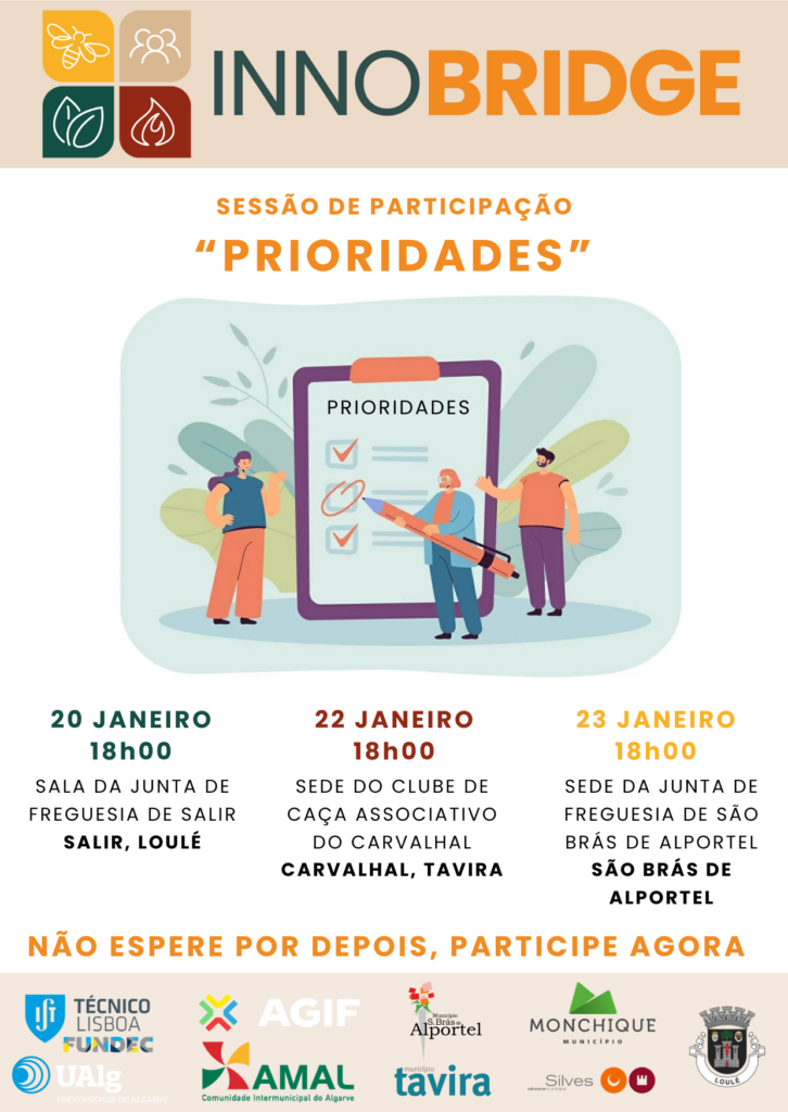 Mais uma vez, a APFSC convida todos os sócios, aderentes e interessados na temática da Serra do Caldeirão a participar nas sessões do projeto Innobridge que decorreram nos dias 20, 22 e 23 de janeiro, em Salir, Carvalhal e São Brás de Alportel, respetivamente pelas 18h00.